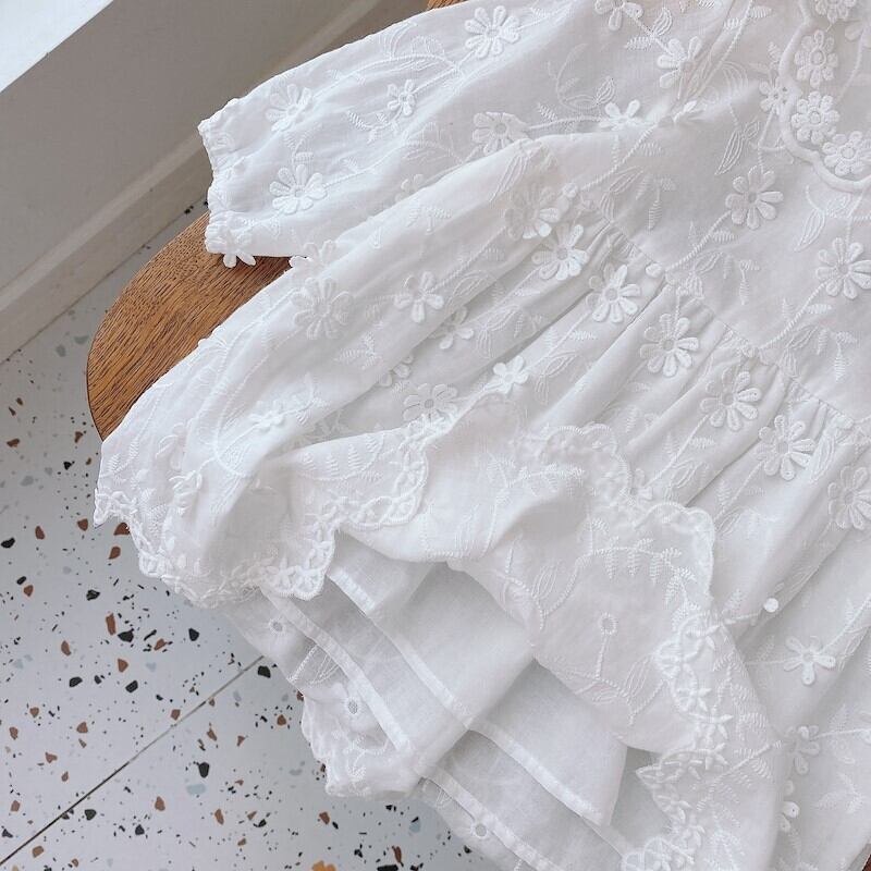 ロングスリーブホワイトコットンドレス