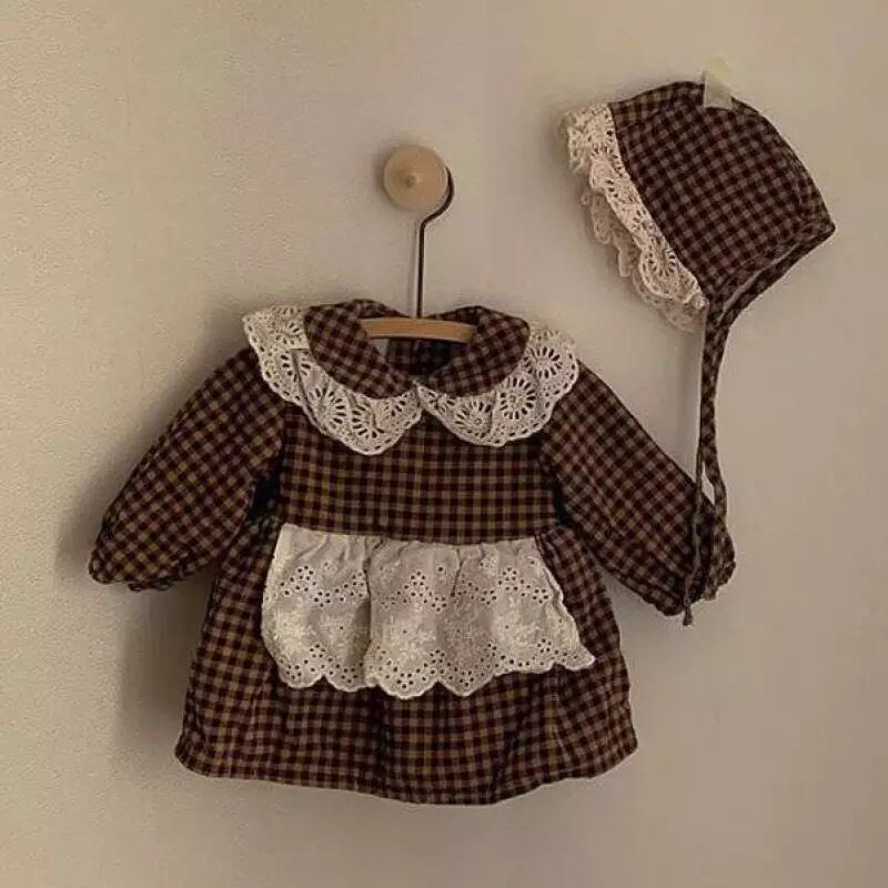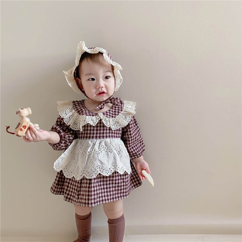 チェックエプロンスカートロンパース